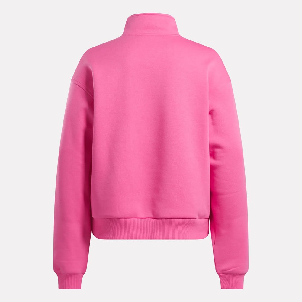 Los días relajados requieren la comodidad de esta sudadera Reebok para mujer. Está confeccionada en tejido polar supersuave y tiene un corte holgado que la hace aún más cómoda. El cierre de cremallera de un cuarto te permite combinarla con otras prendas para crear un look totalmente personalizado.
