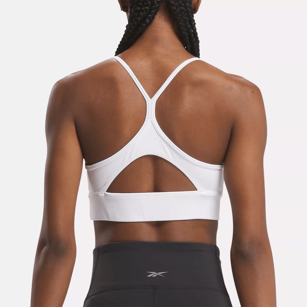 Usa este sujetador deportivo Reebok con espalda de tres cuartos y dale un toque de estilo a tus entrenamientos. Su suave escote en V crea un look favorecedor. Los tirantes forman un triángulo en la espalda y una abertura en la parte inferior aporta transpirabilidad. La tecnología Speedwick te mantiene cómoda y seca mientras levantas pesas.